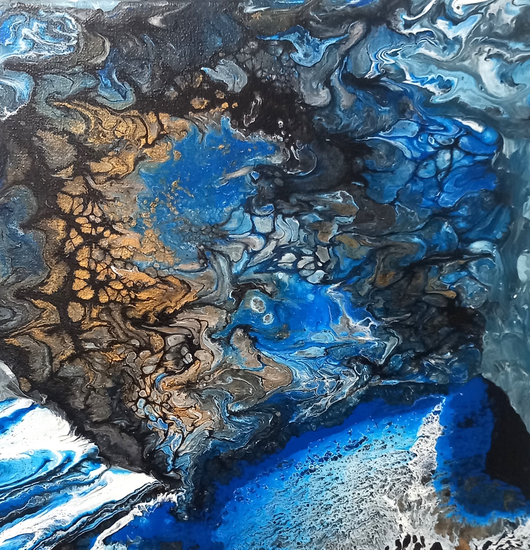 🎨 Couleurs : bleu profond, bleu, cuivre, noir
